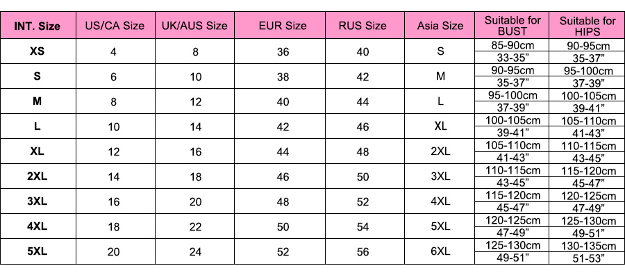 Our size takes international size as the standard, so please refer to the table for the size standard compared with other countries, We use high quality fabric which can be easily stretched . Please also refer to the following measurements restrictions: (Our product will not fit you if your measurements exceed the following restrictions).