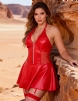 Red PU Leather Lace Sexy Halter Lingerie With Garter Belt