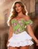 8 Pieces Plastic Bones Green Sexy Puff Sleeves Printed Palace Style Corset