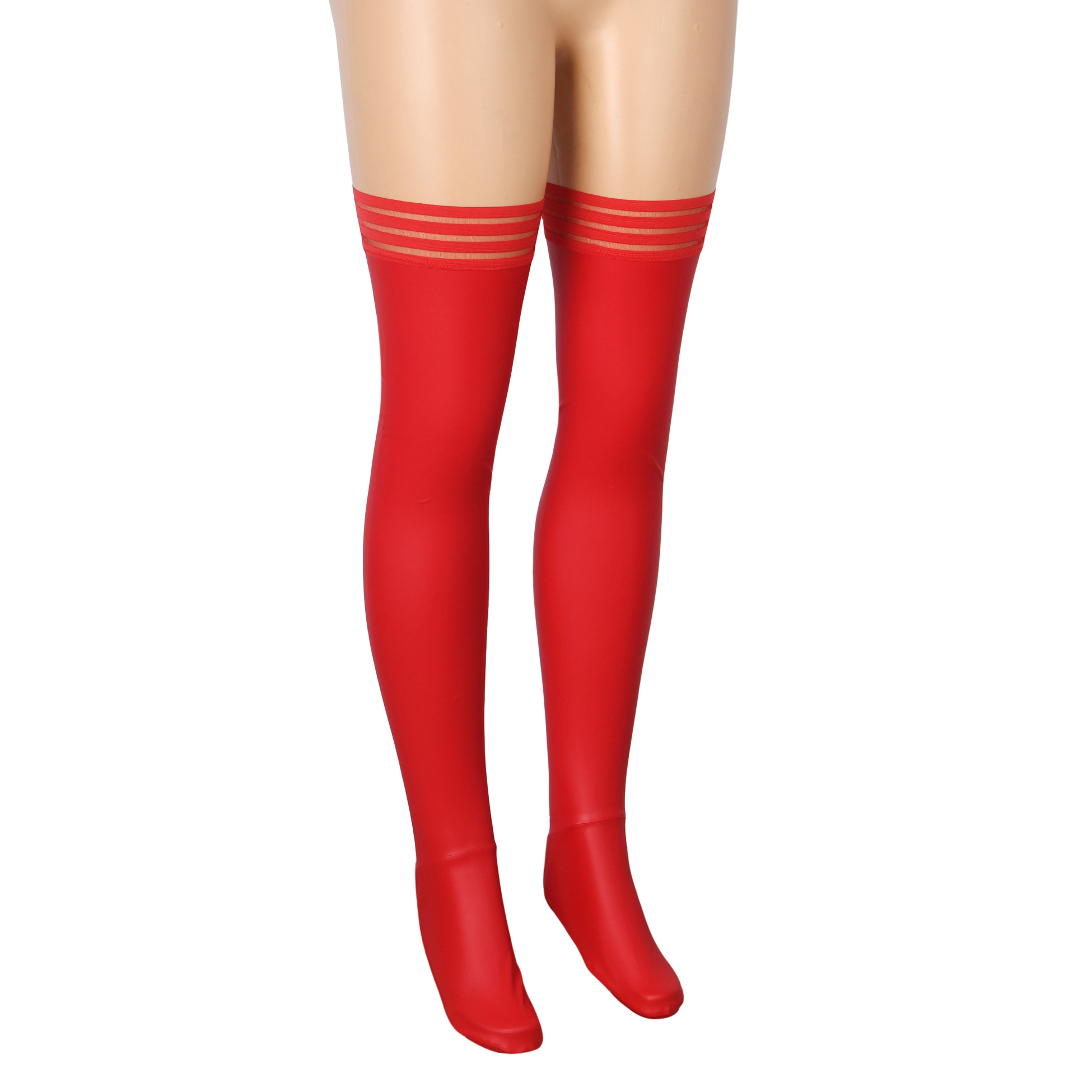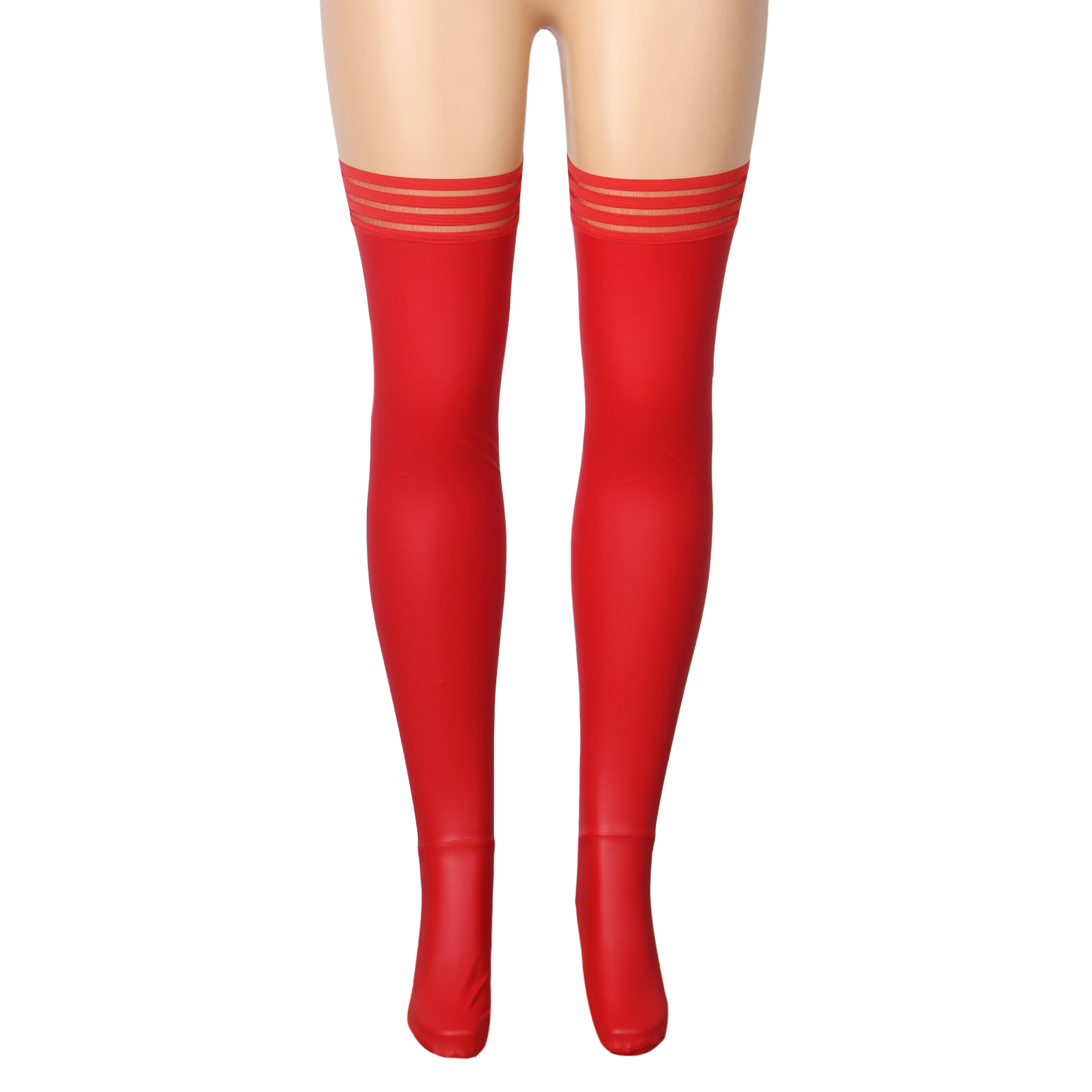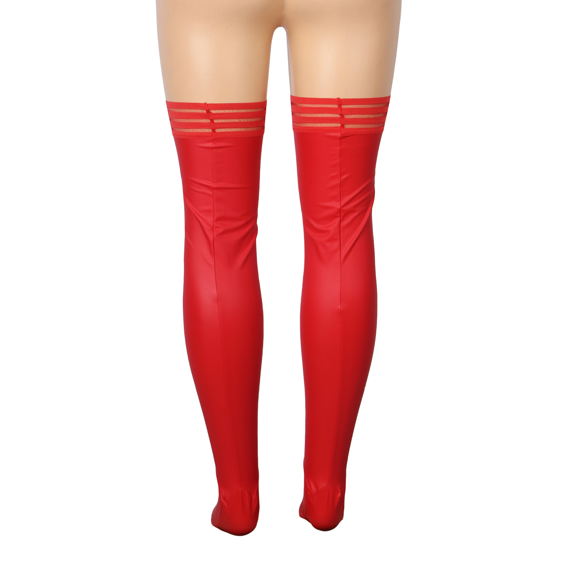Red Sexy Matt PU Leather Striped Elastic Stockings