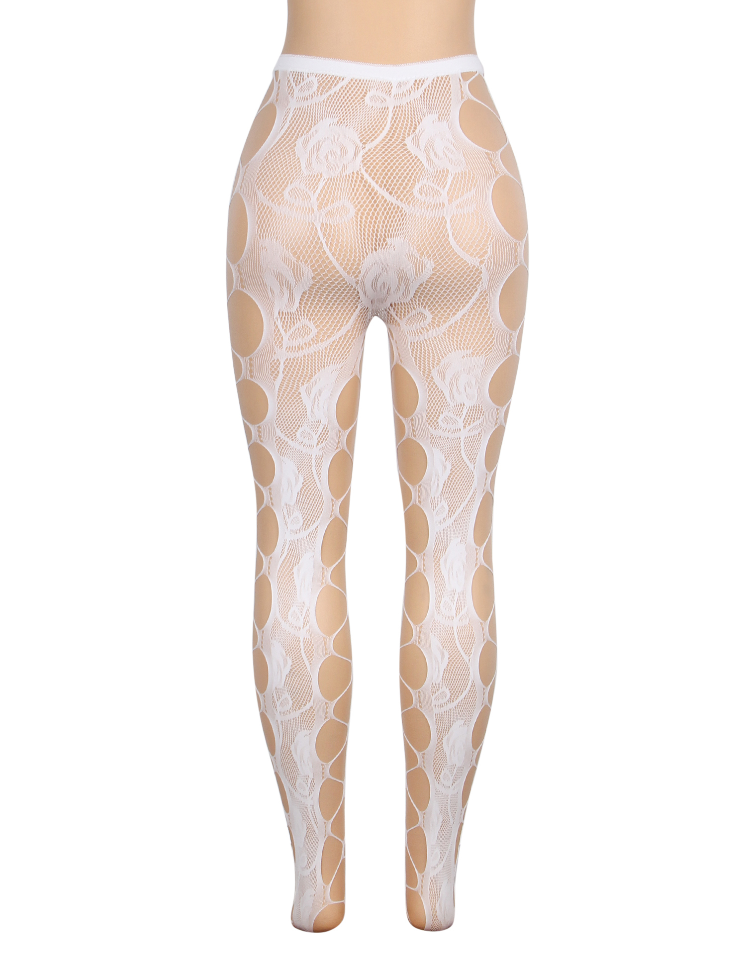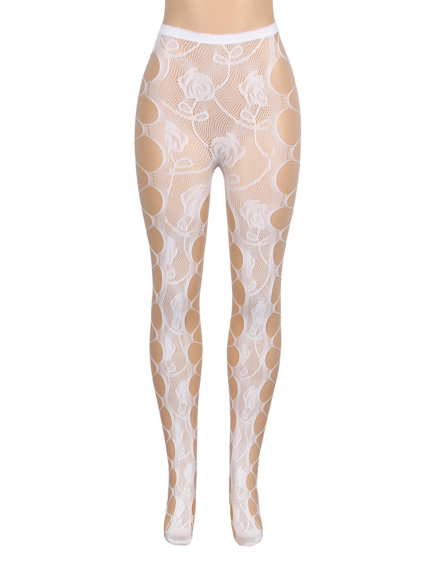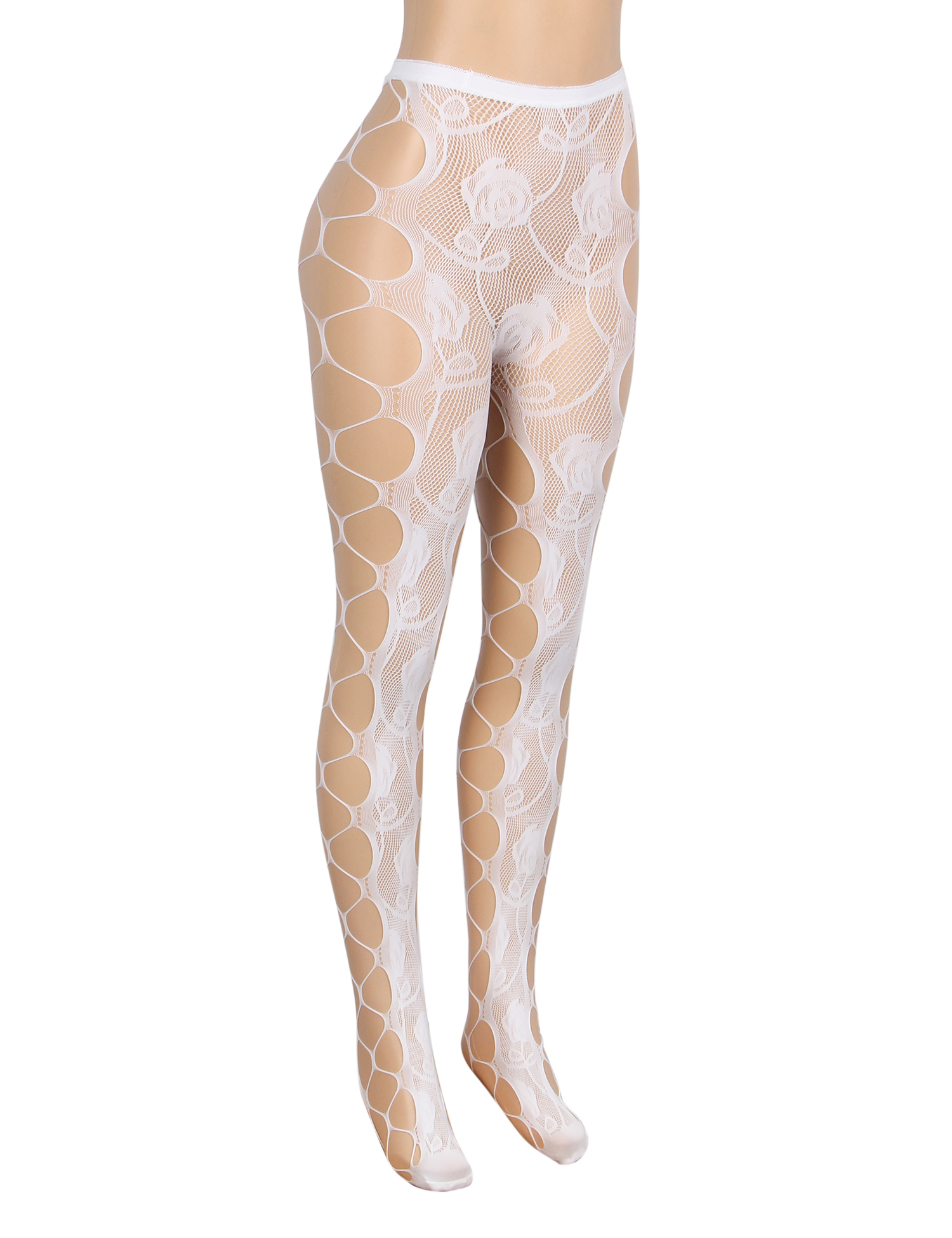 White Glow-In-The-Dark Sexy Irregular Cutouts Fishnet Pantyhose