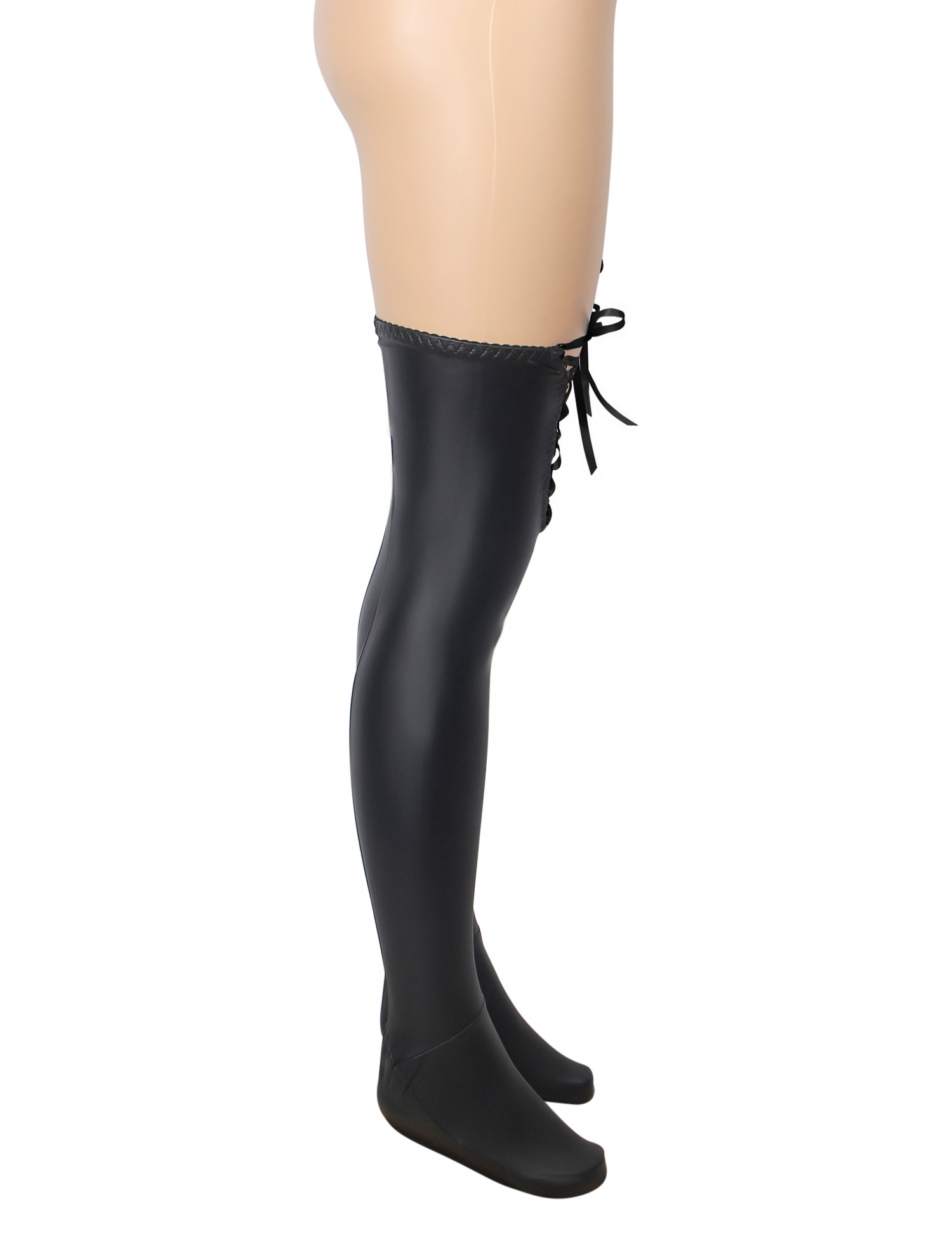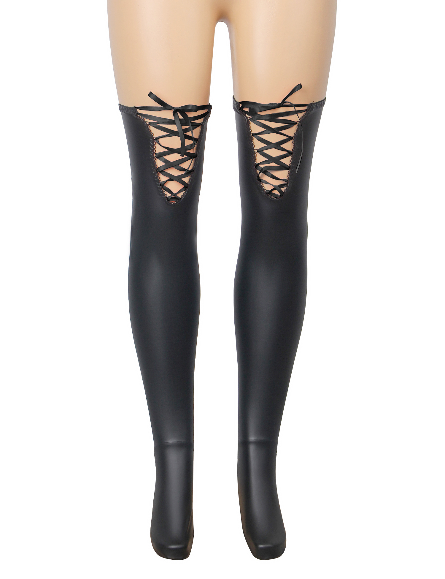Black Sexy PU Leather Stockings With Black Cross Straps