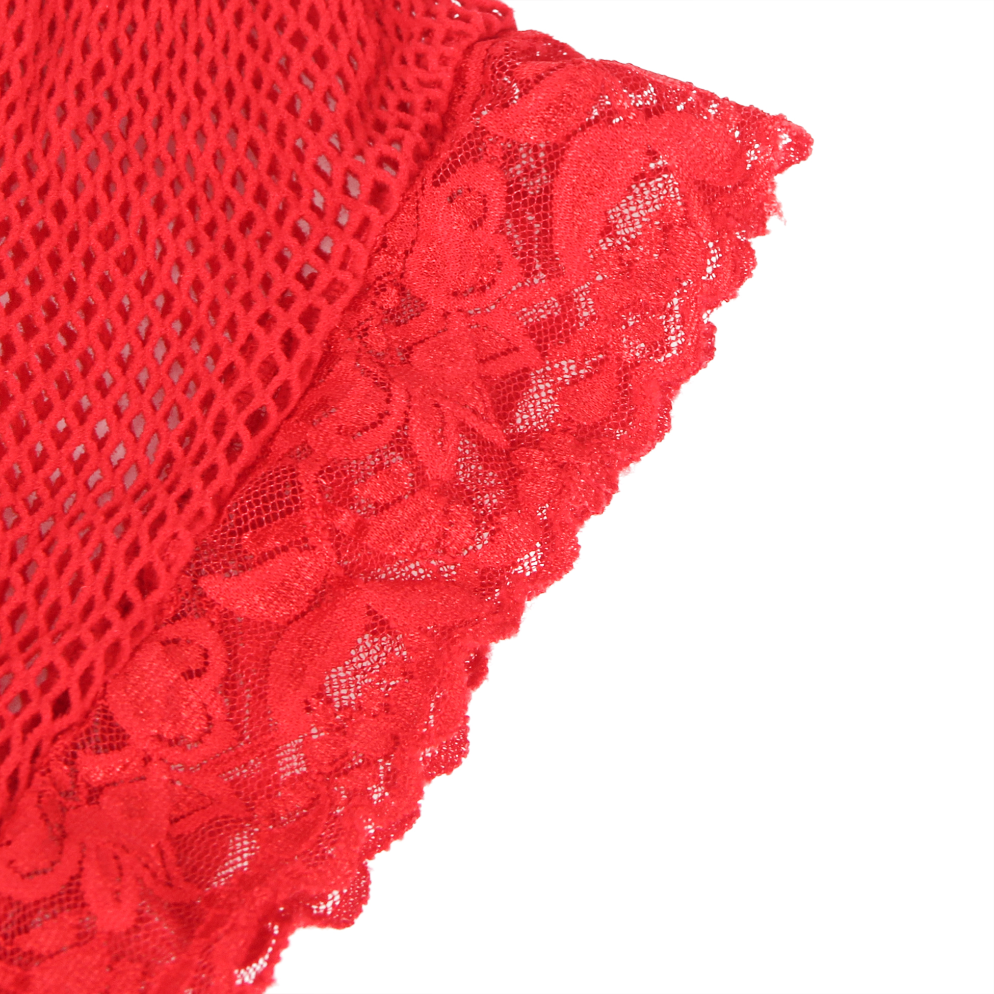 Red Sexy Fishnet Long Sleeves Bodysuit