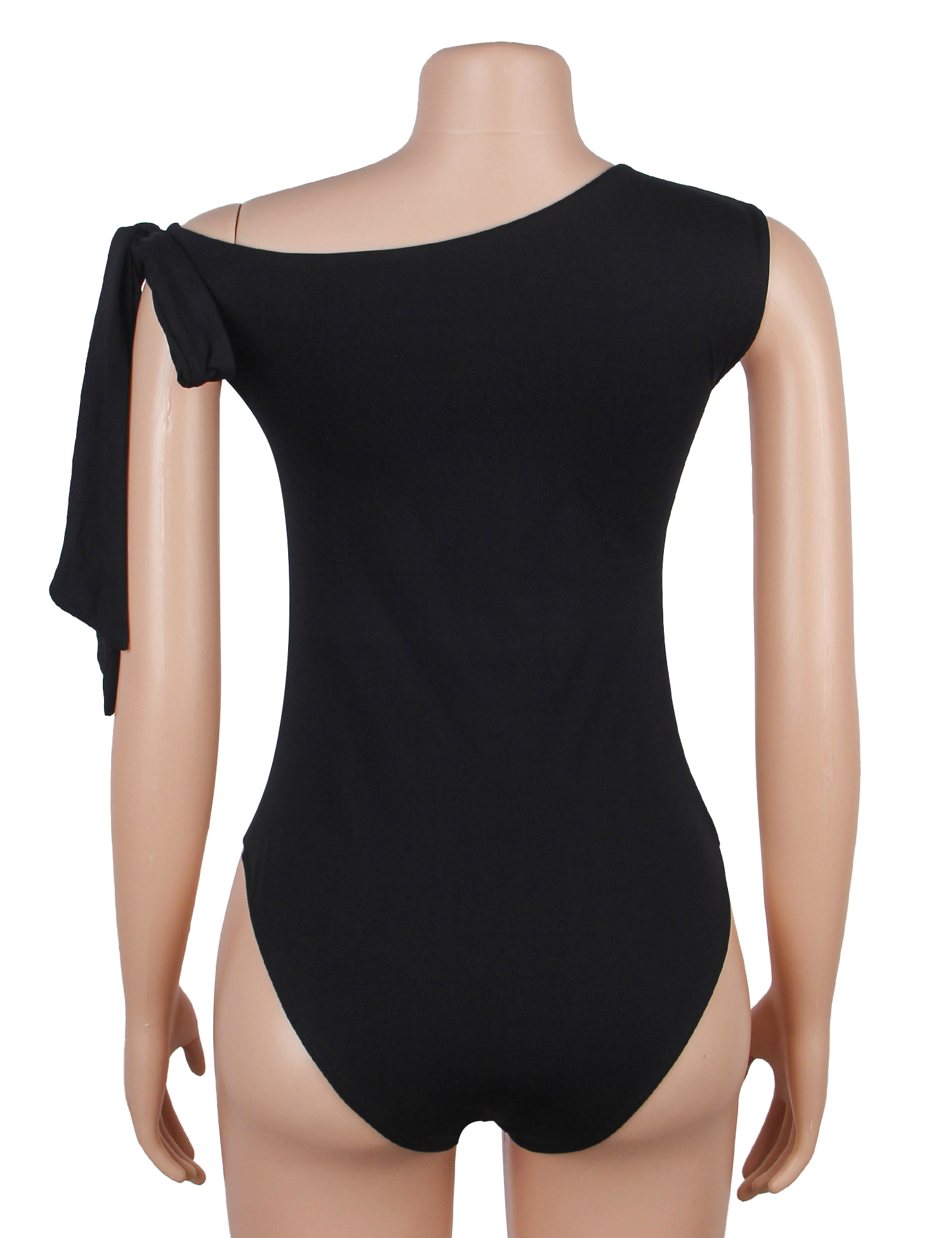 Black Sexy Bow Tie Sleeveless Off-shoulder Open Crotch Bodysuit