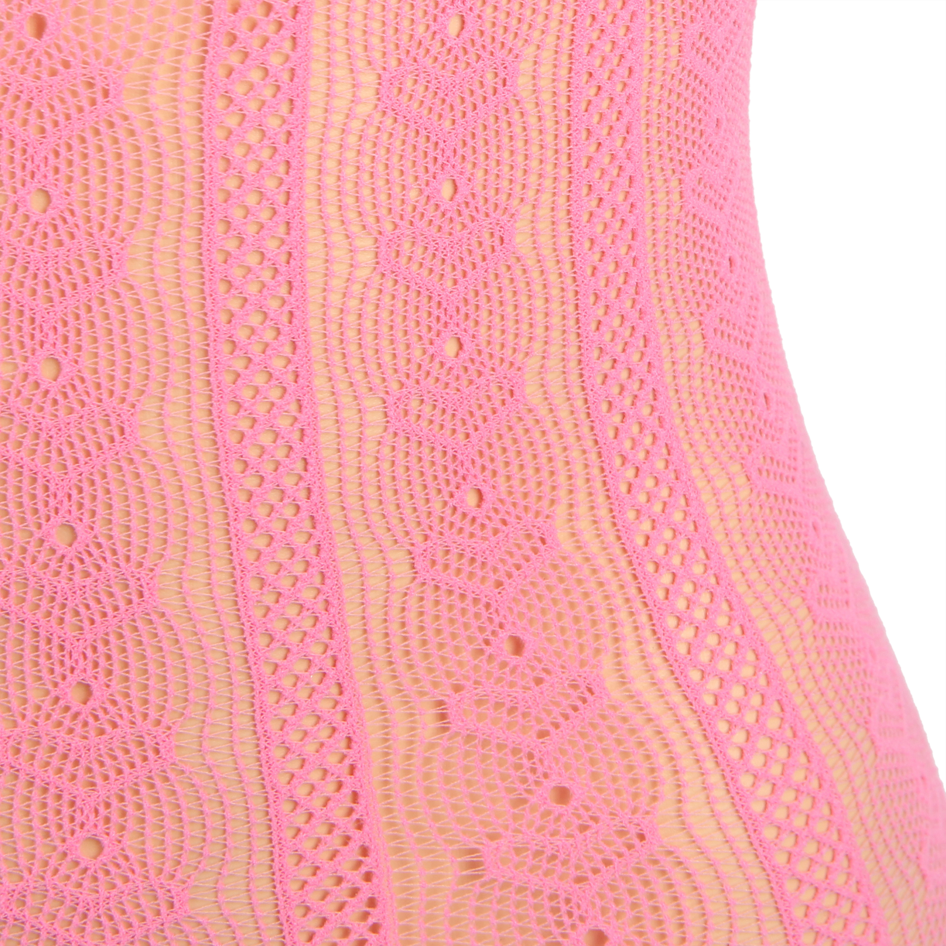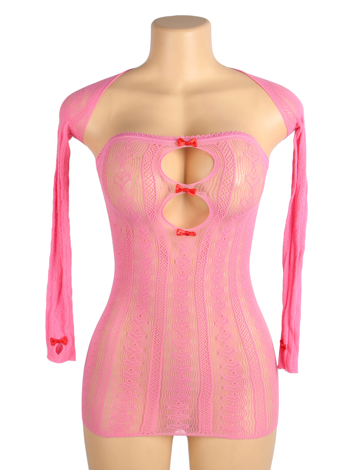 Pink Sexy Long Sleeves Hollow Out Bow Bodystocking