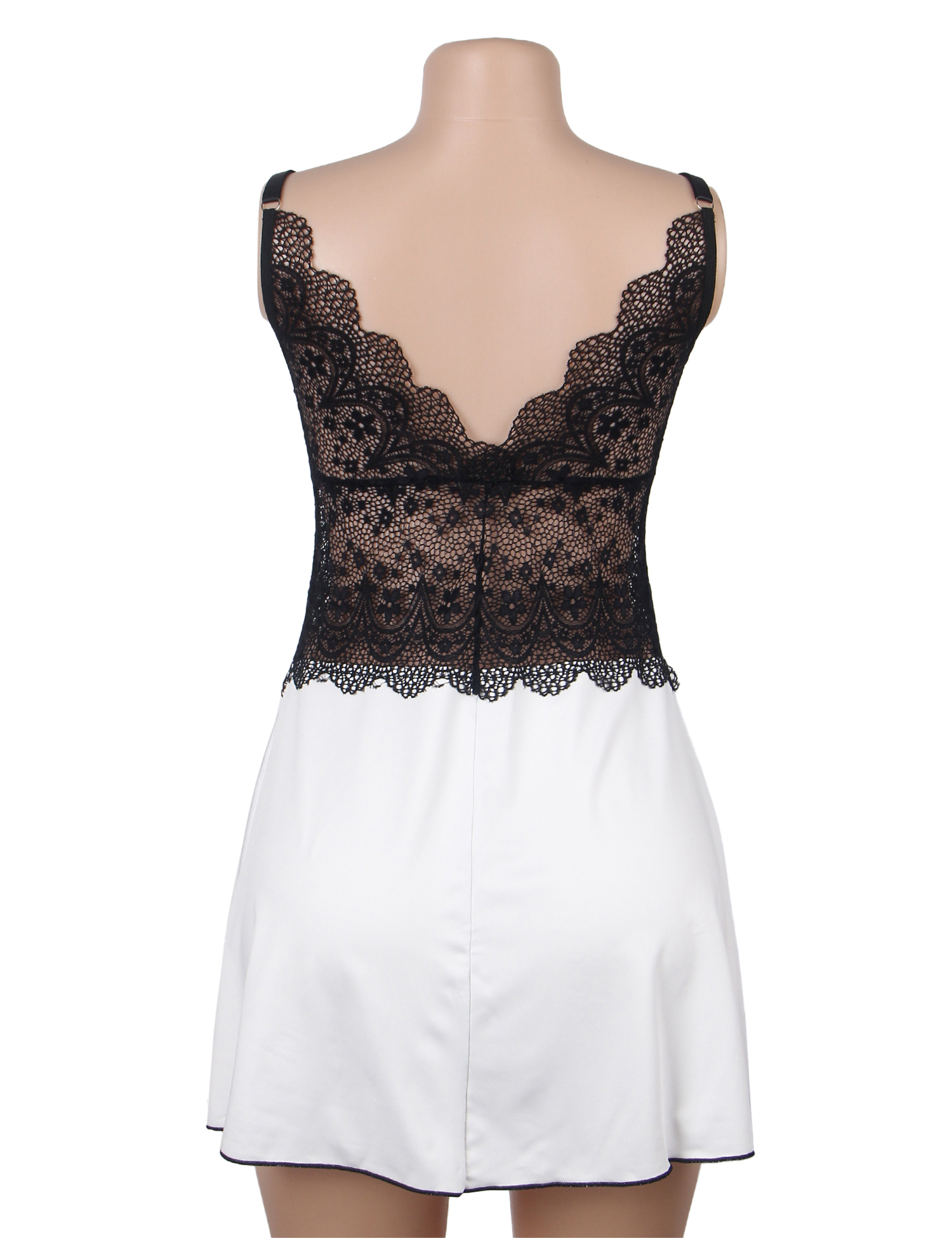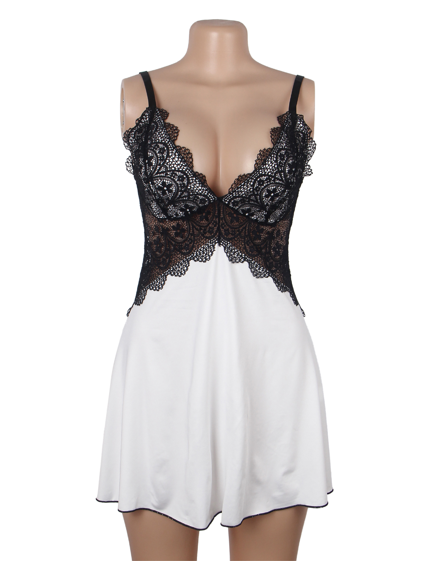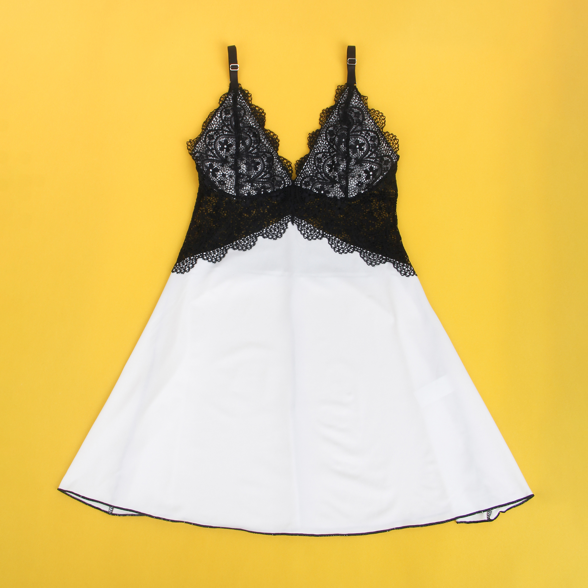 V-neck Black And White Lace-Trimmed Sexy Nightdress