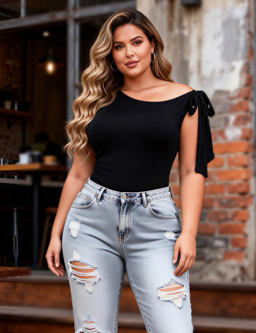 Black Sexy Bow Tie Sleeveless Off-shoulder Open Crotch Bodysuit