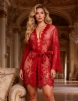 Sexy Long Sleeve Eyelash Lace Short Red Sleepwear With Thong