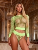 Green Long Sleeve Two-Piece Bodystocking With Fishnet Crop Top And Bottom