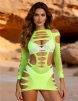 Standard Product Name: Available in black, pink, and green, made from high-elasticity nylon yarn, featuring multiple striped hollow-out designs, long-sleeved bodycon bodysuit style, sizes M-XL, sexy bodysuit set.