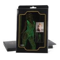 Standard Product Name: White, made from high elastic nylon yarn, glow-in-the-dark style, fishnet holes, hollowed-out, open-crotch, one size L, sexy glow-in-the-dark bodysuit