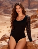 This one-piece is made of high quality double brushed nylon swim fabric that is soft and comfortable. One of its outstanding features is the lace mesh spliced into the sleeves, a design that is both beautiful and breathable, adding a sexy and stylish element to the overall look.