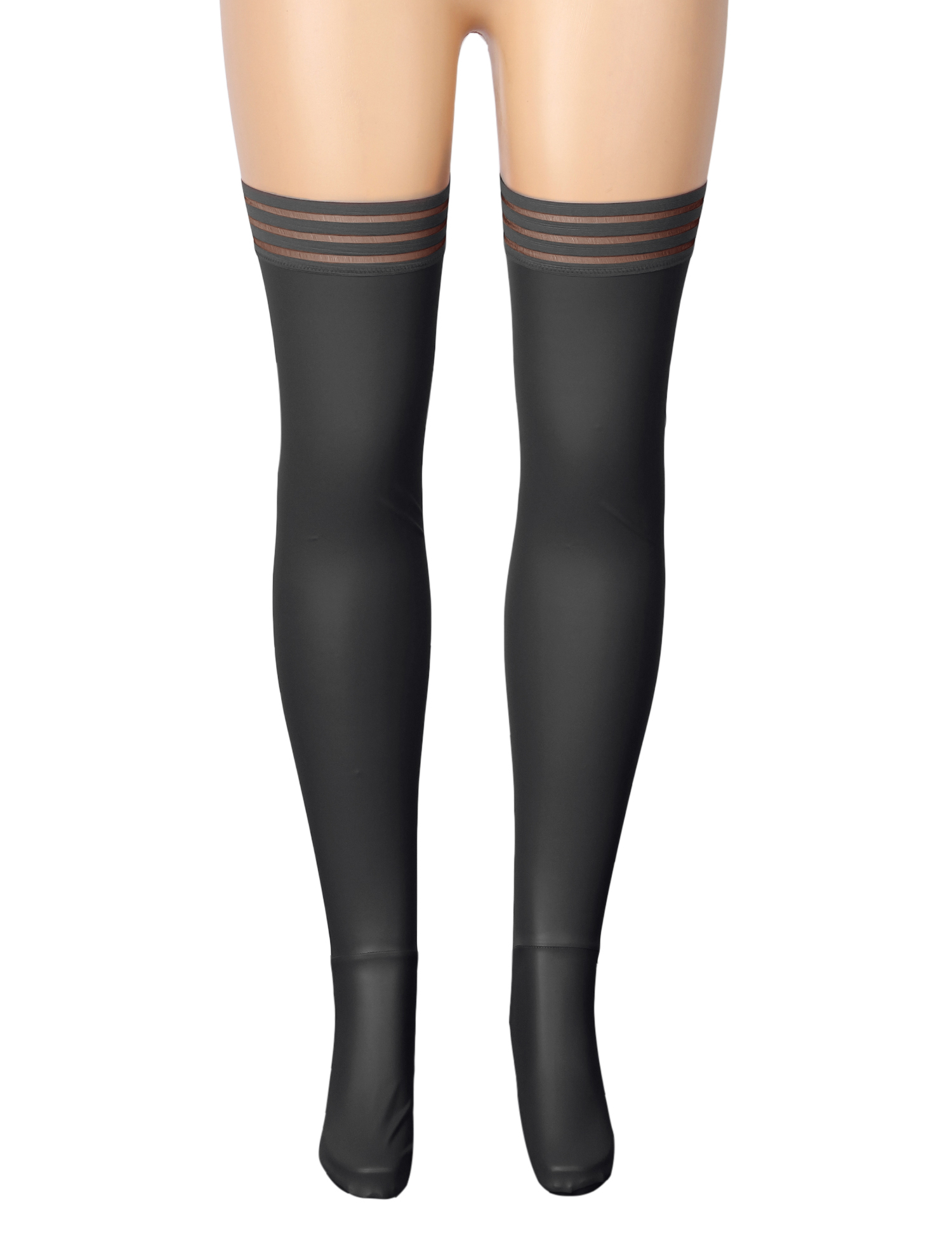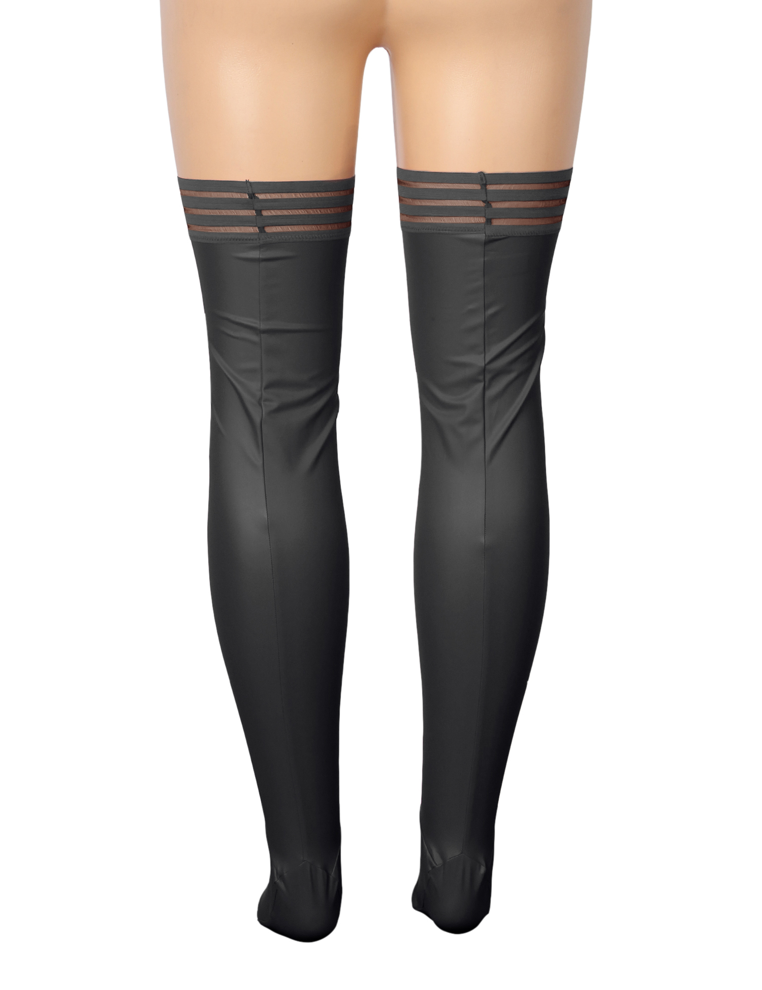 Black Sexy Matt PU Leather Striped Elastic Stockings