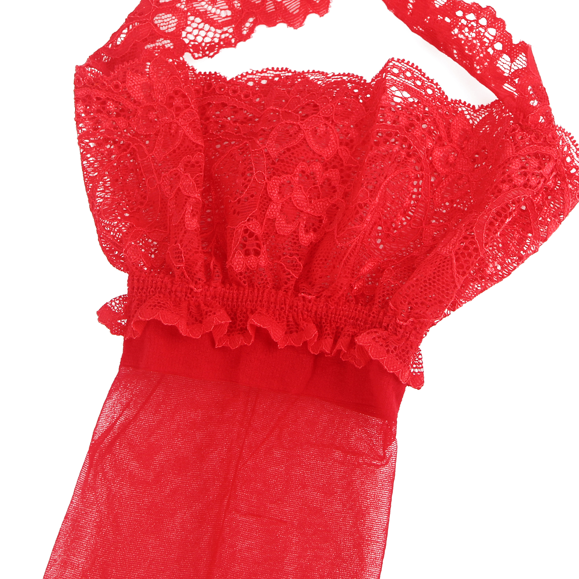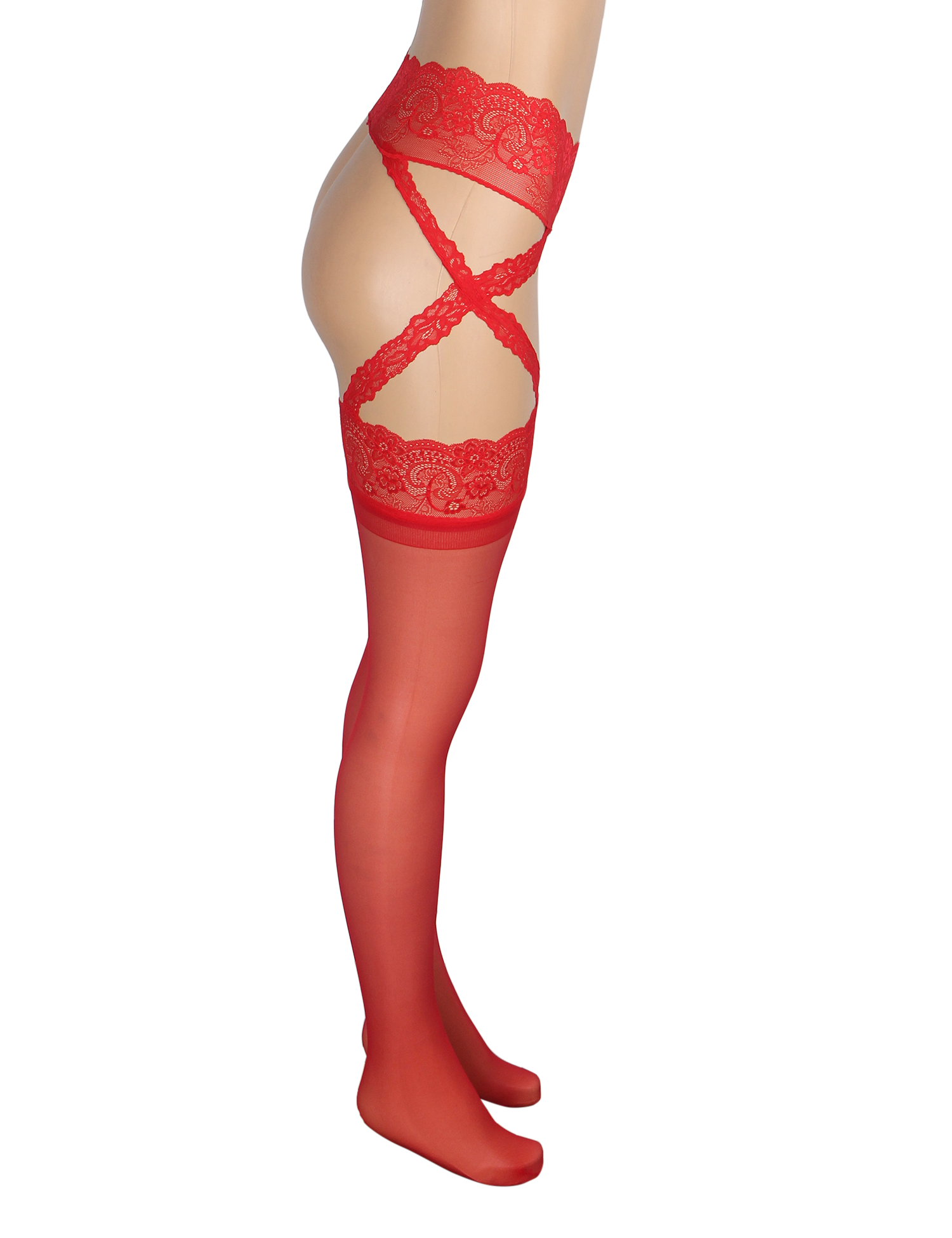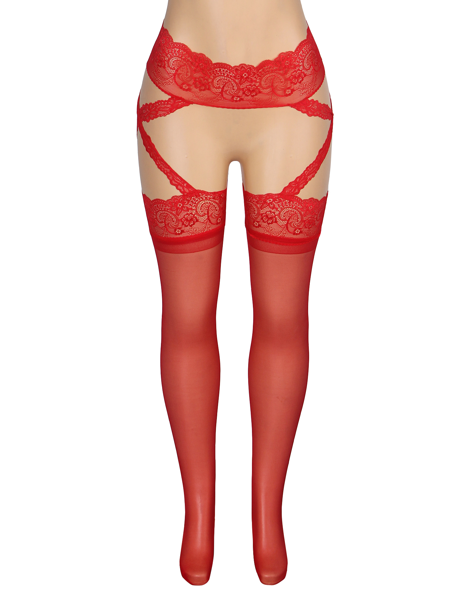 Red Sexy Stockings Lace Cross One Piece Pantyhose
