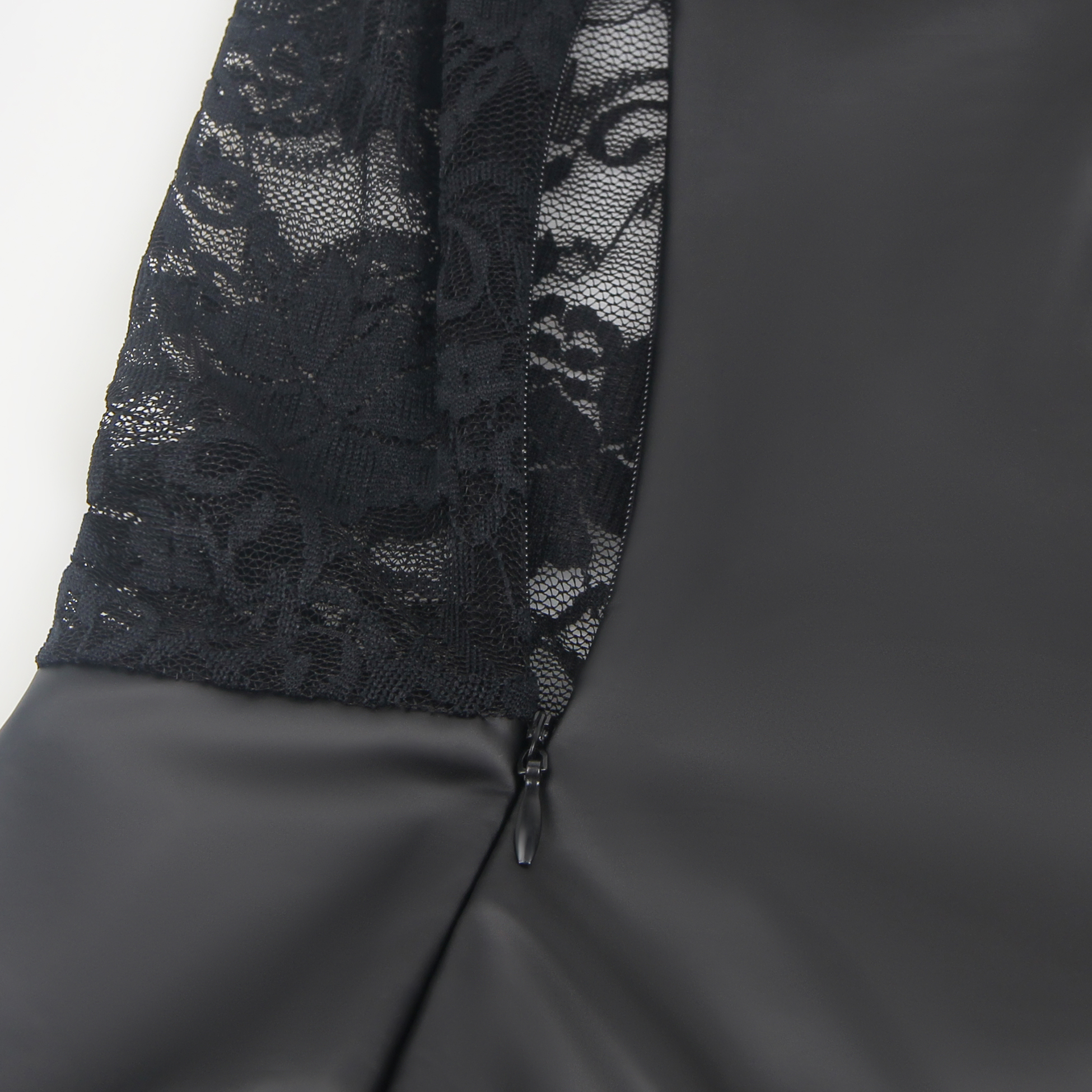 Black Long Sleeves PU Leather Lace Sexy Nightdress