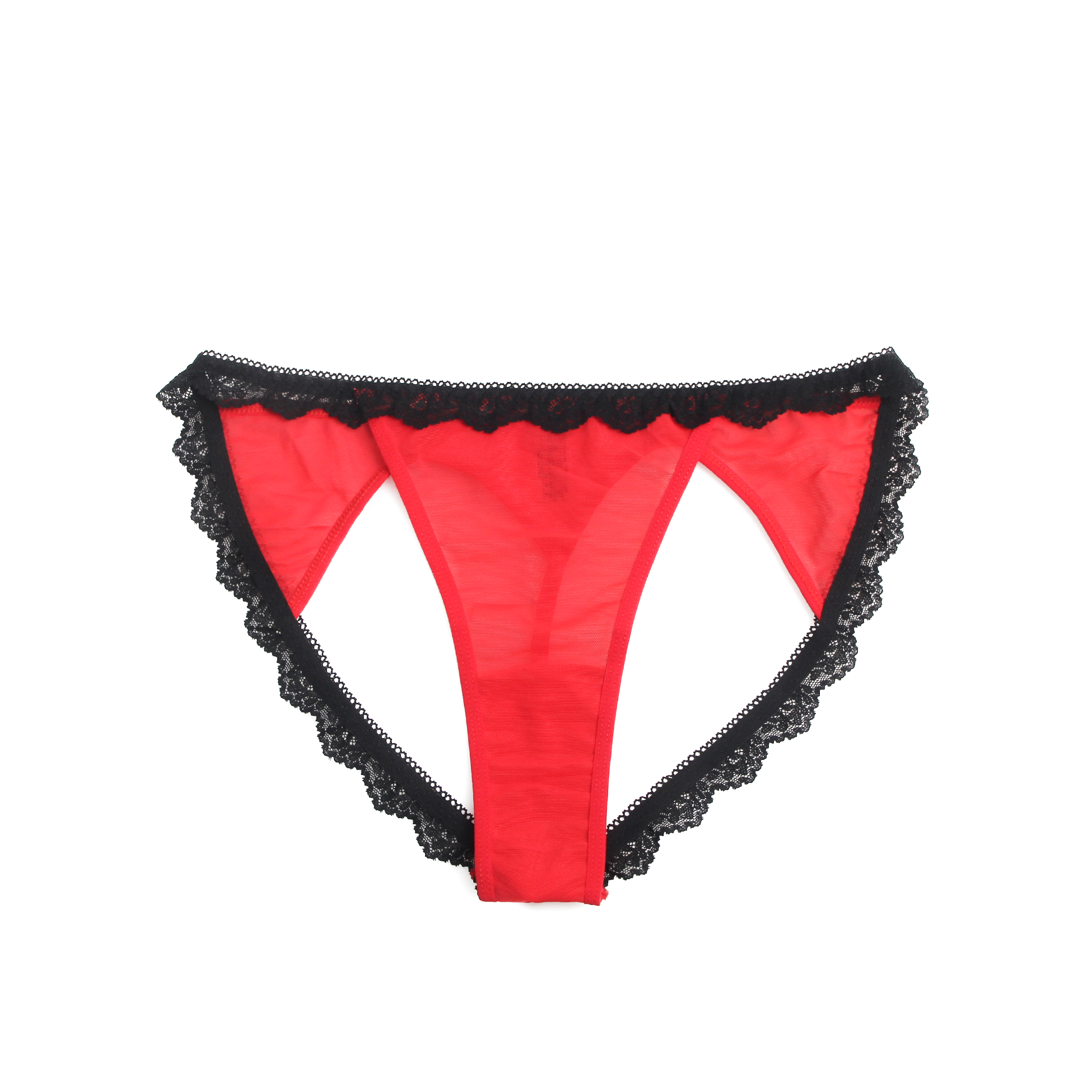 Black And Red Sexy Mesh Lace Cutout Open Hip Thin Straps Women Panty