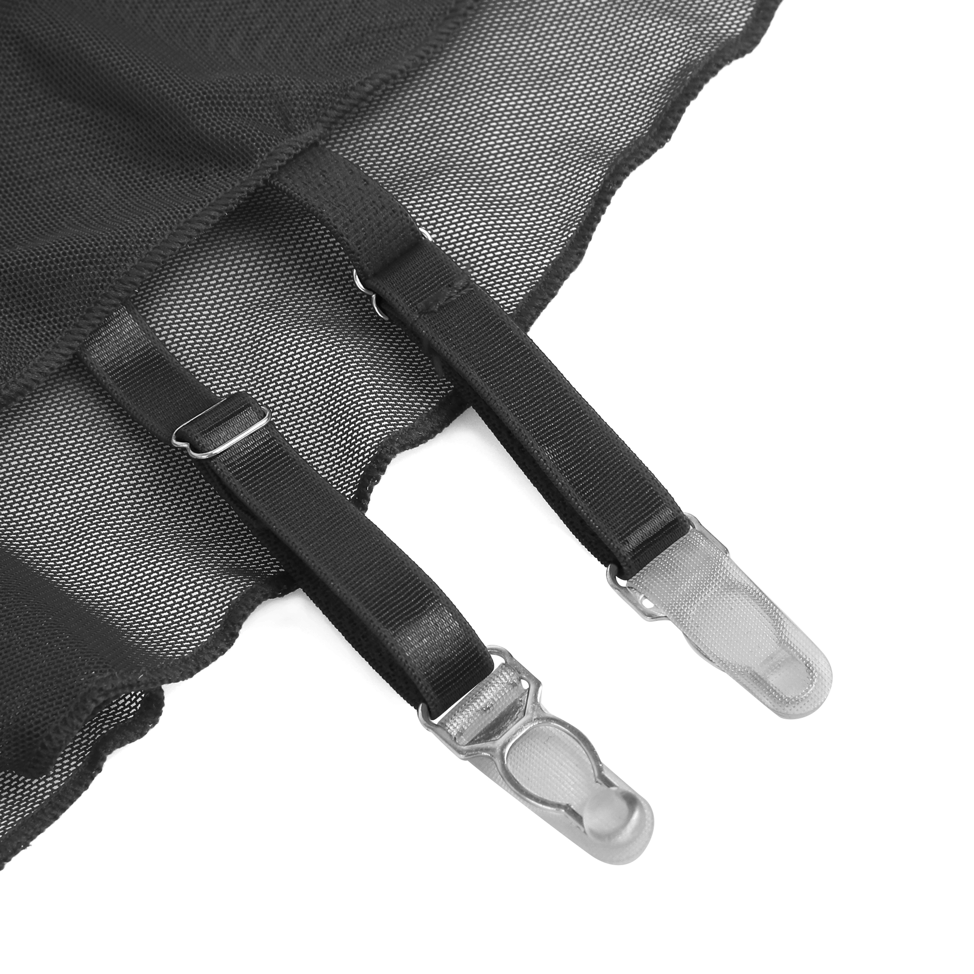 Including: Garter belt dress + panties + leg cuffs + waist belt