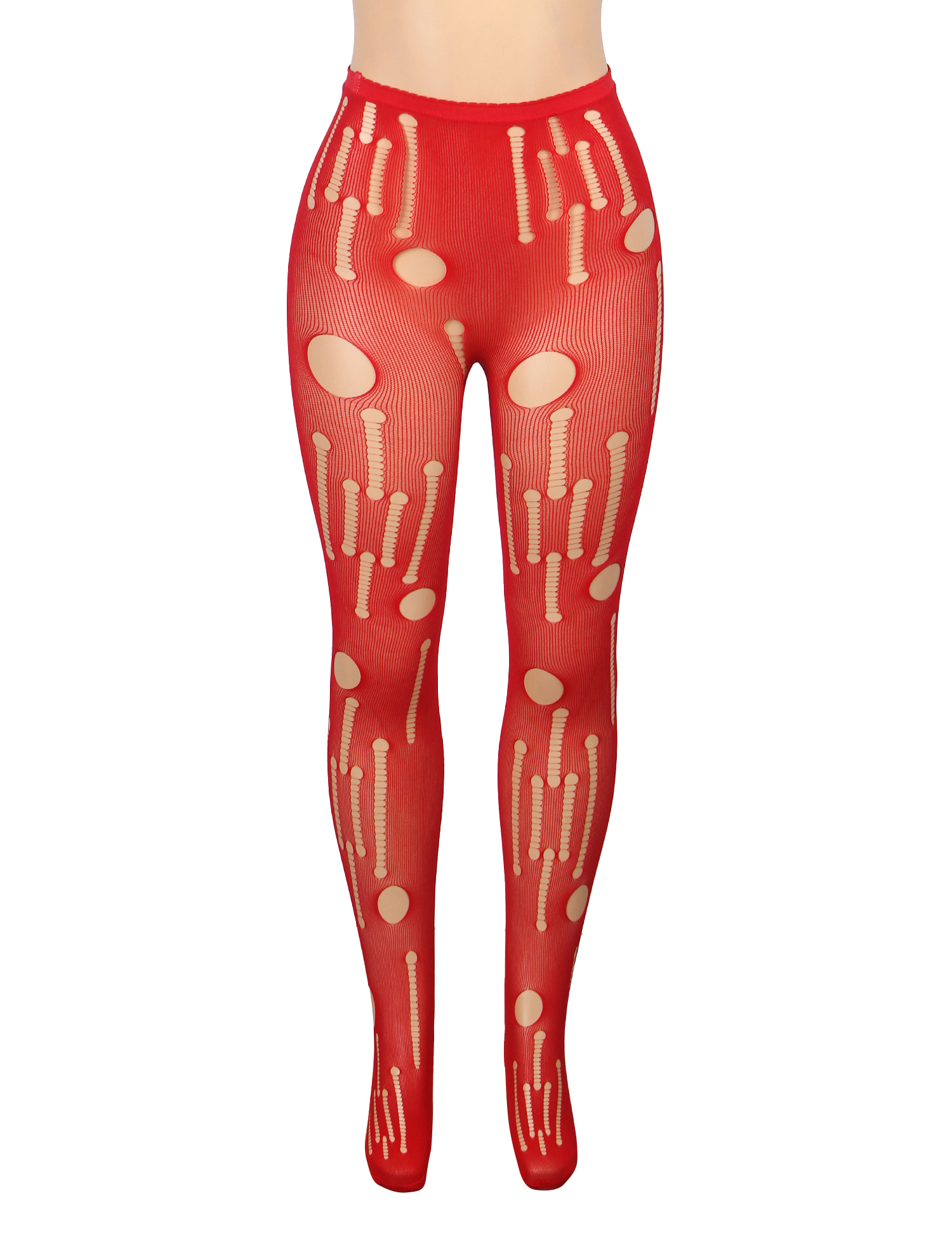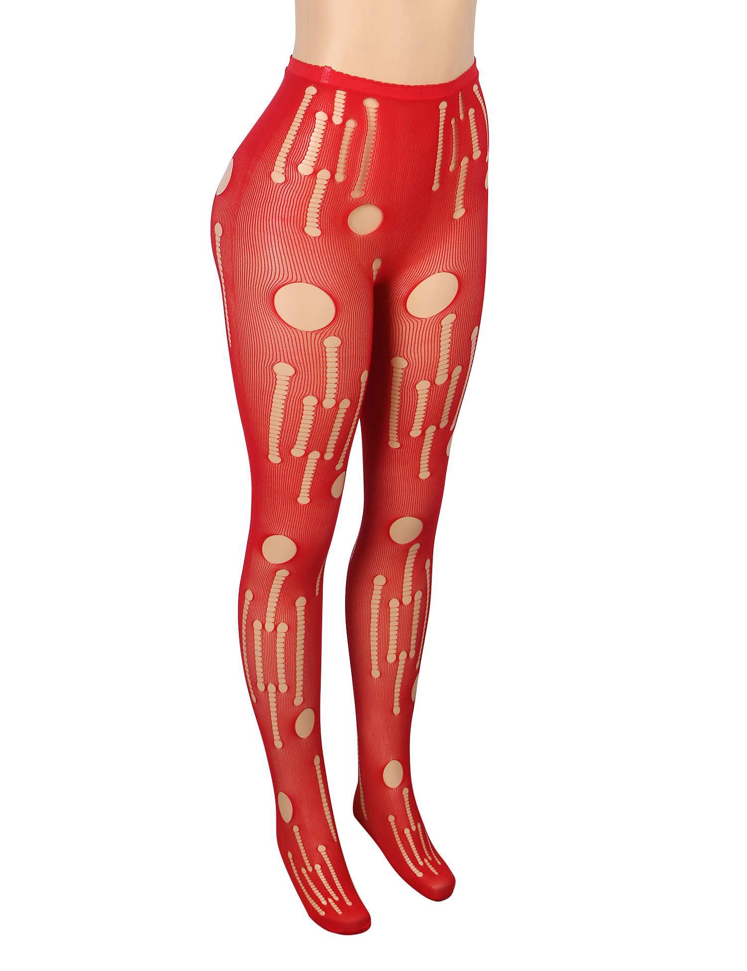 Red Sexy Torn Fishnet Pantyhose