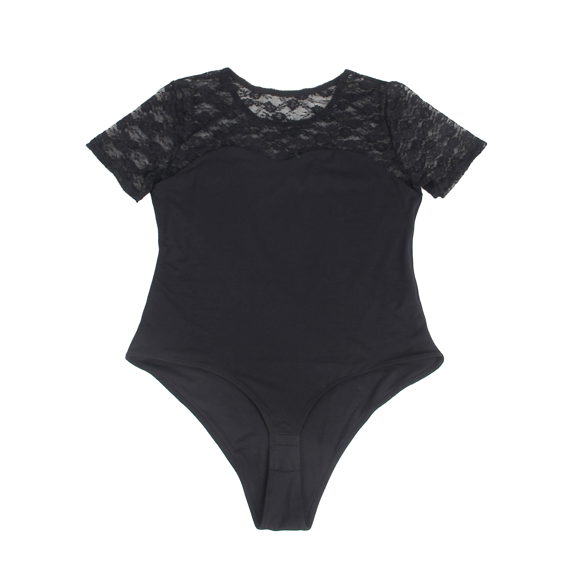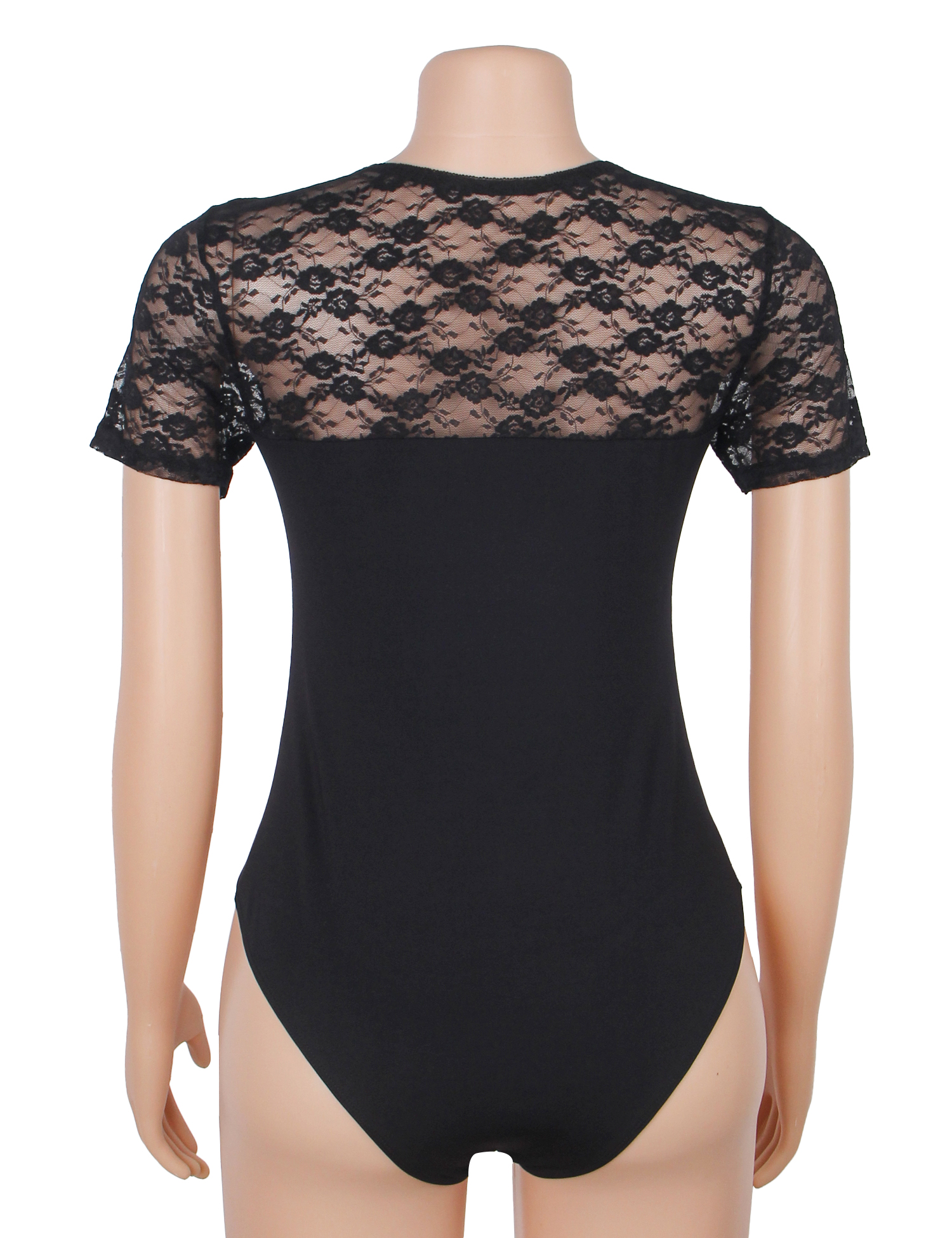 Black Sexy Swim Cloth Lace Short Sleeves Open Crotch Bodysuit