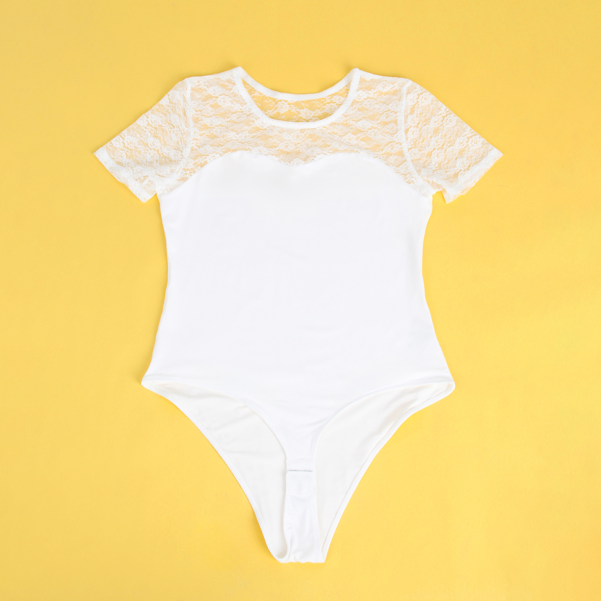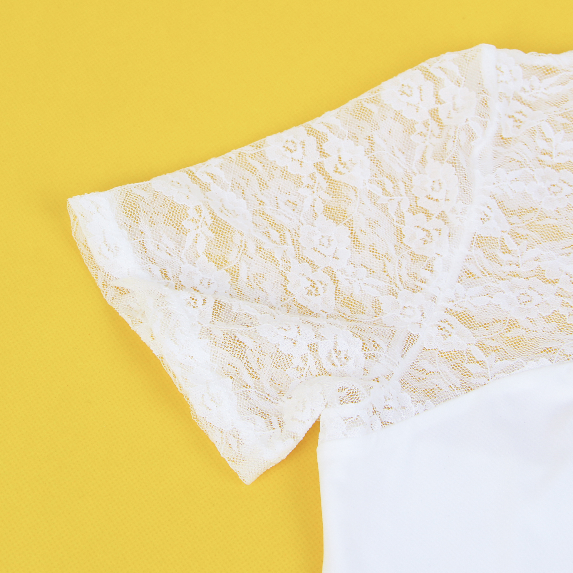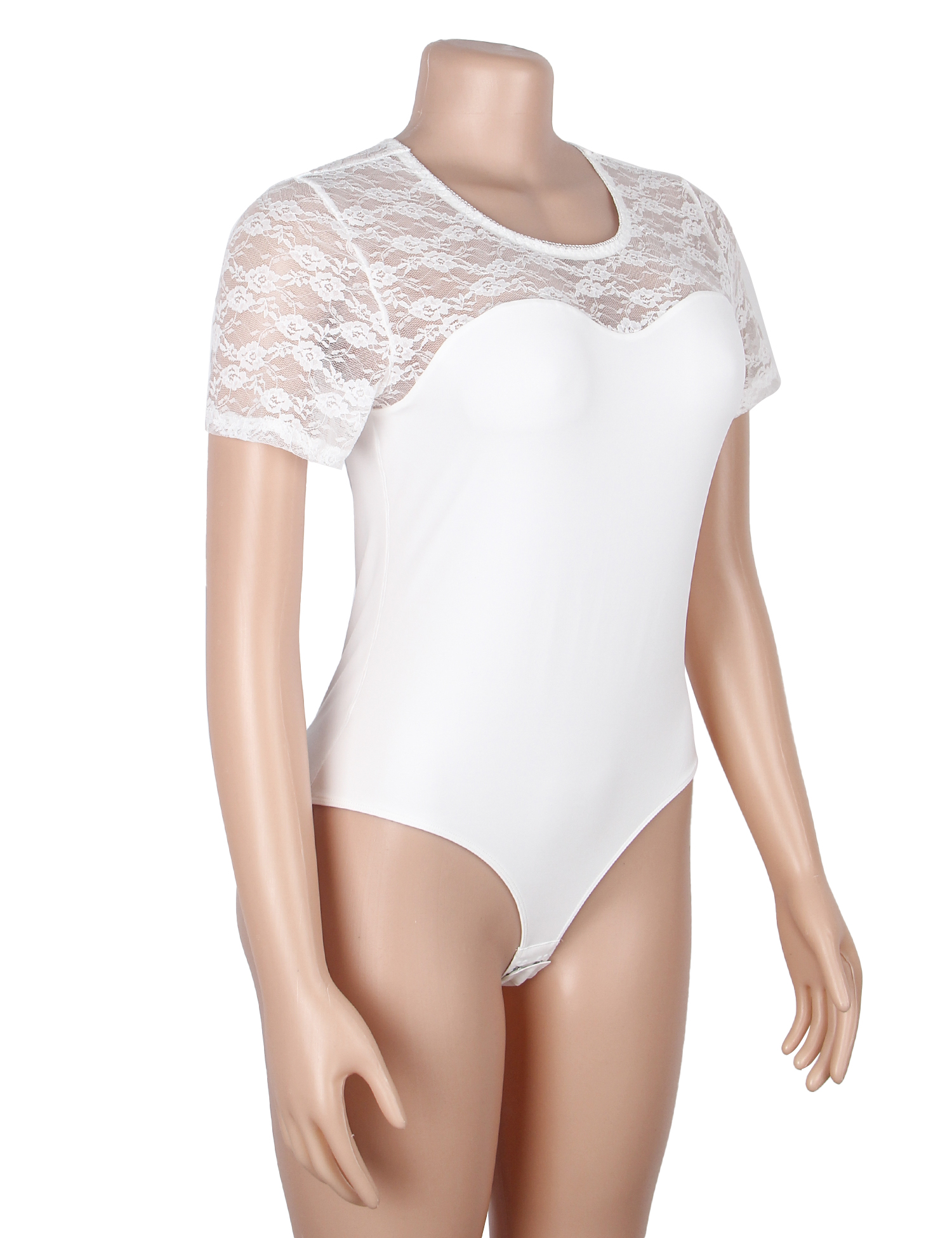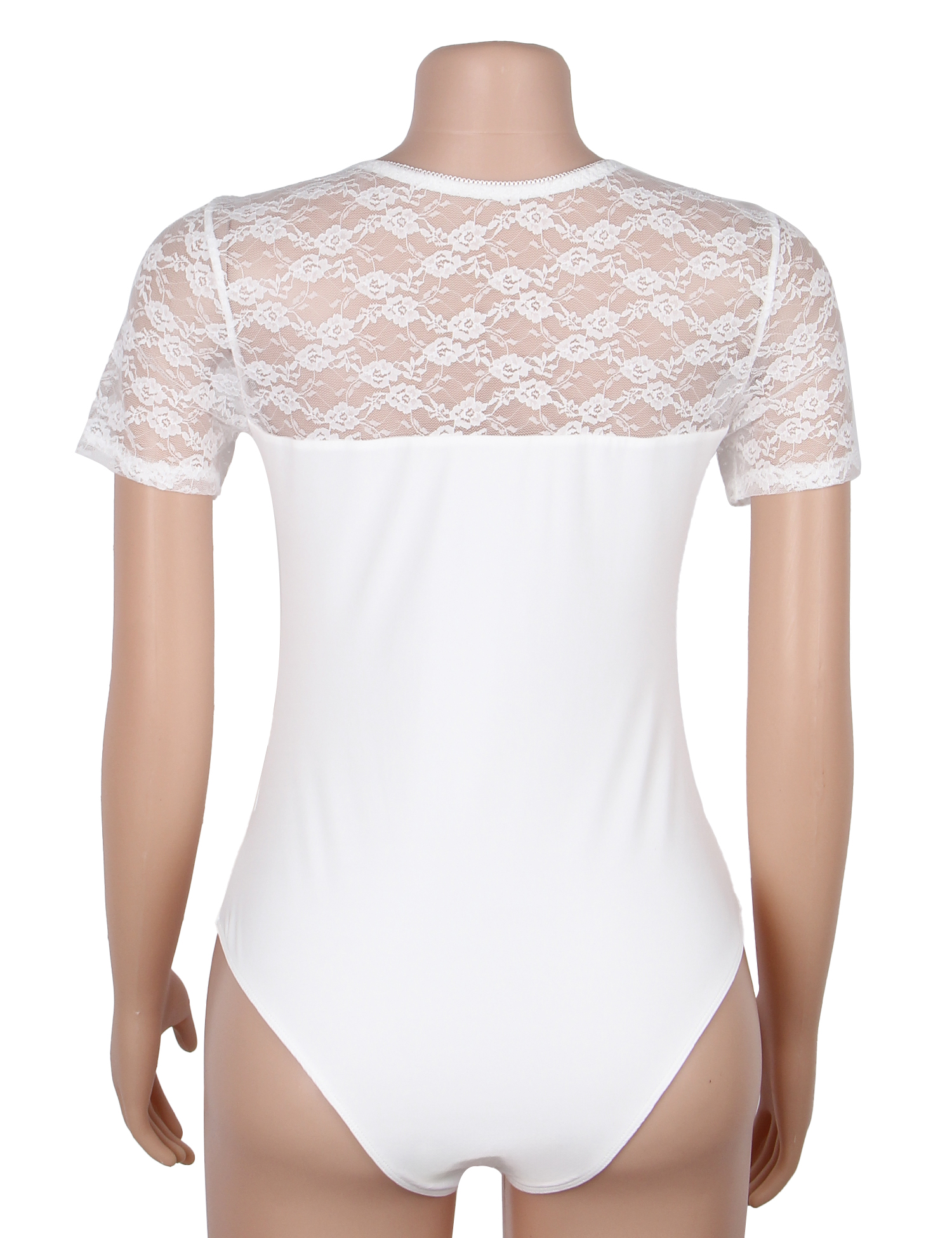 White Sexy Swim Cloth Lace Short Sleeves Open Crotch Bodysuit